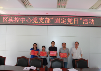 每月最后一周的星期五为区疾控中心的固定党日,为全面落实从严治党要求,切实加强基层党组织建设,丰富党员组织生活,中心党支部结合当前重点工作,多形式开展固定党日活动。