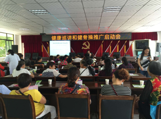 9月6日,“五进”活动走进孝感镇,区疾控中心专业人员首先为来自银山路社区的50余名居民奉上主题为“健康素养66条”的健康知识讲座,对66条健康素养内容进行普及,重点就健康四大基石“合理膳食、适量运动、戒烟限酒、心理平衡”进行详细解读,使广大居民认识到人的身体和心理不能截然分开,身体和心理都健康的人才能和社会相适应,从而达到真正的健康。讲座结束后,区疾控中心专业人员带领与会群众进行健骨操的推广学习。跟着带教老师的节拍,大家学习热情空前高涨,纷纷表示学习健骨操在锻炼身体之余,还能起到预防骨质疏松的作用,同时丰富业务生活,是个一举多得的好事情。