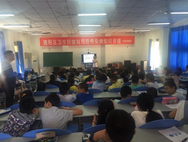 随后,区疾控中心来到孝感镇涪江路小学,为200余名在校小学生进行了主题为“学校常见传染病防控知识”的培训,结合当前季节,以学校传染病的特点为切入点,对流行性感冒、水痘、流行性腮腺炎、流行性脑脊髓膜炎、猩红热、麻疹、手足口病、艾滋病等常见学校传染病从如何认识早期症状、传播方式以及在生活中如何做好预防等知识进行了重点讲解,号召大家在日常生活及学习中要做到“勤洗手、常通风、多喝水、作息规律、饮食均衡、坚持锻炼、注意保暖、保持居室卫生、避免接触传染性病人”。同时要求学校严格按照国家相关规范建立健全学校各项疾病预防工作制度,落实相关防控措施,做好重点防控工作,给师生创造良好的教学空间,保障学生健康成长。