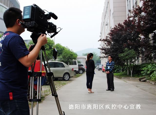 图为5月12日,中心派人参加旌阳人民广播电台直播节目,宣传手足口病预防知识。