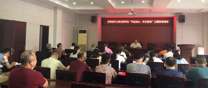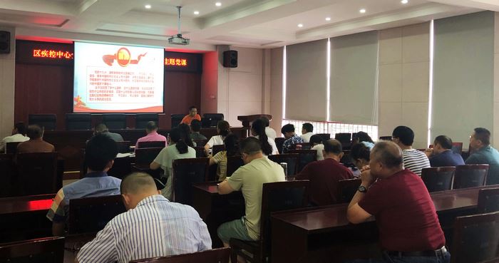 最后中心党支部副书记陈学均同志以《不忘初心跟党走,牢记使命护健康》为题为大家上党课,从什么是初心、什么是使命,疾控人的初心情怀和使命担当体现在哪里,新形势下怎样保持“不忘初心,牢记使命”三个方面深入阐述了共产党员如何立足本职岗位为人民服务。让大家深刻感受到党员的历史使命感和政治责任感。