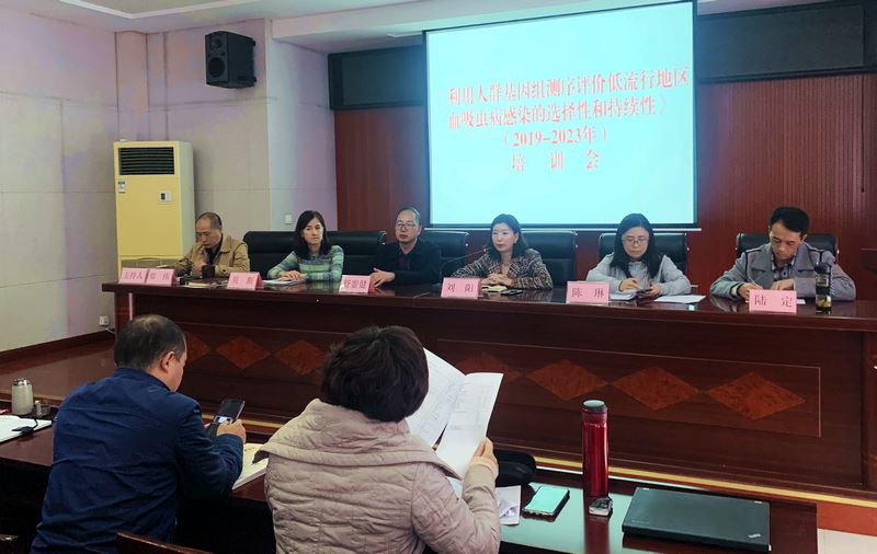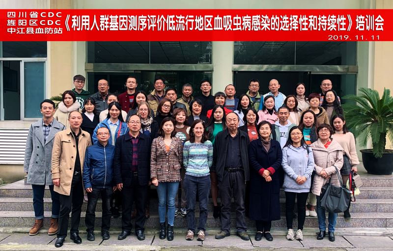 2019年11月11日,四川省疾控中心与美国科罗拉多州立大学合作的《利用人群基因测序评价低流行地区血吸虫病感染的选择性和持续性》培训会在旌阳区疾控中心召开。省疾控中心领导、有关血防专家,美国科罗拉多州项目博士贝斯、研究员安吉,旌阳区疾控中心领导、血防专业技术人员、科研项目选点乡镇卫生院血防专干共计40余人参会培训。