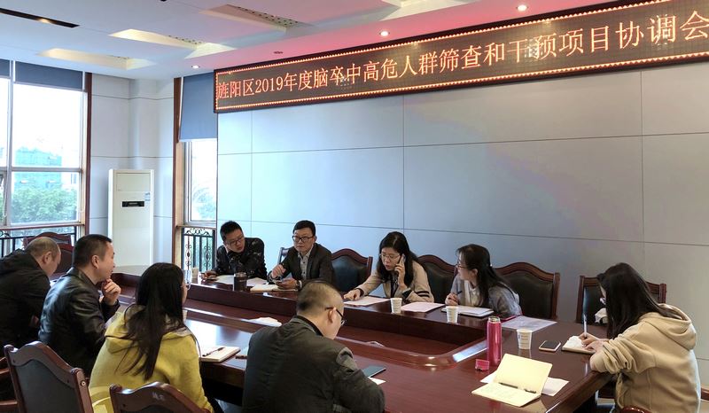 为进一步做好脑卒中高危人群筛查和干预项目工作,普及脑卒中防治知识,降低脑卒中高危人群的发病率、死亡率和致残率,10 月 24 日,旌阳区疾控中心组织召开2019 年度脑卒中高危人群筛查和干预项目工作协调会,市疾控中心、区卫健局、市人民医院、孝感、黄许卫生院分管领导及项目负责人参加会议。