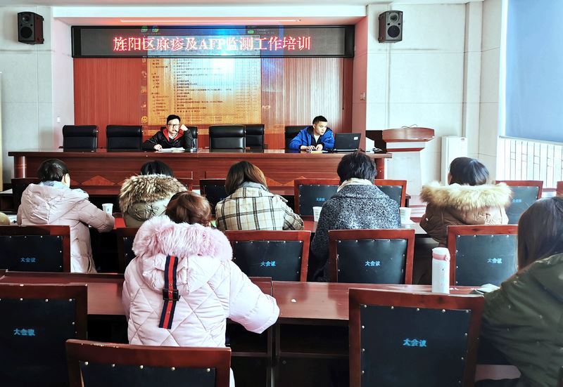 2019 年麻疹及 AFP 病例监测工作开展情况,解读了全国麻疹监测方案和急性弛缓性麻痹(AFP)病例监测方案,并对监测工作的重点,特别是报告和采样要求进行了强调。随后对流行性感冒诊断标准及报告规范以及全国不明原因肺炎病例监测、排查和管理方案(2013 年修订版)进行了培训。最后分析了旌阳区2019年流感发病情况,对2019年传染病报告管理工作存在的问题及经验进行了总结分析,并对下一步工作进行了安排部署。