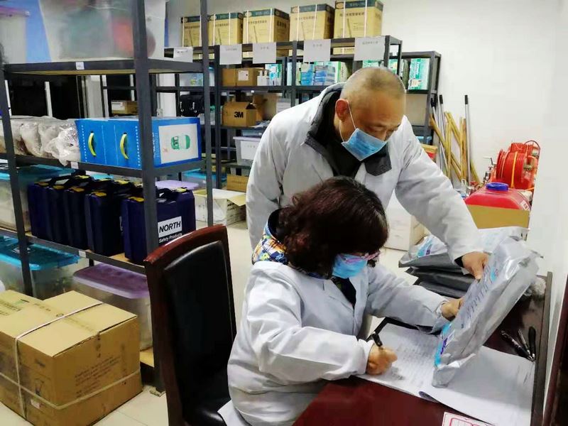 兵马未动,粮草先行。后勤需要保障前方口罩、防护服、手套、消毒药品、器械等物质的供应。面对防护用品短缺、春节物流停运等困难,他们需要与多方沟通、联系、协调,加班加点筹集物资,保障疫情防控物资及时有效供应。及时的装货、卸货、盘点、整理、入库、分发,繁忙的工作在夜色寒气中有条不紊地推进着。