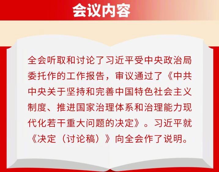 编者按:中国共产党第十九届中央委员会第四次全体会议公报已发布,现特选取公报要点,与大家一起学习。