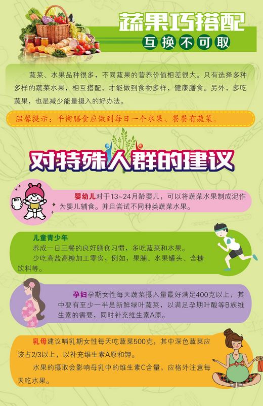 2019年5月12日-18日是我国第五届“全民营养周”活动,为贯彻落实“国民营养计划”,活动以“合理膳食、天天蔬果、健康你我”为主题,以“全民营养,全面小康”和“健康中国,营养先行”为口号,集中宣传“蔬菜水果”科学信息和健康益处,促进健康生活方式的形成,提高公众作为健康第一责任人的科学应对能力。