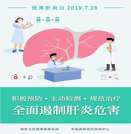 2019年7月28日是第9个“世界肝炎日”,为继续推进全社会共同关注病毒性肝炎防治工作,国家卫生健康委确定今年的宣传主题为“积极预防,主动检测,规范治疗,全面遏制肝炎危害”,旨在号召大家积极主动接种疫苗,主动体检了解自身健康状况,感染者接受规范的抗病毒治疗,全面遏制病毒性肝炎对人类健康的威胁。