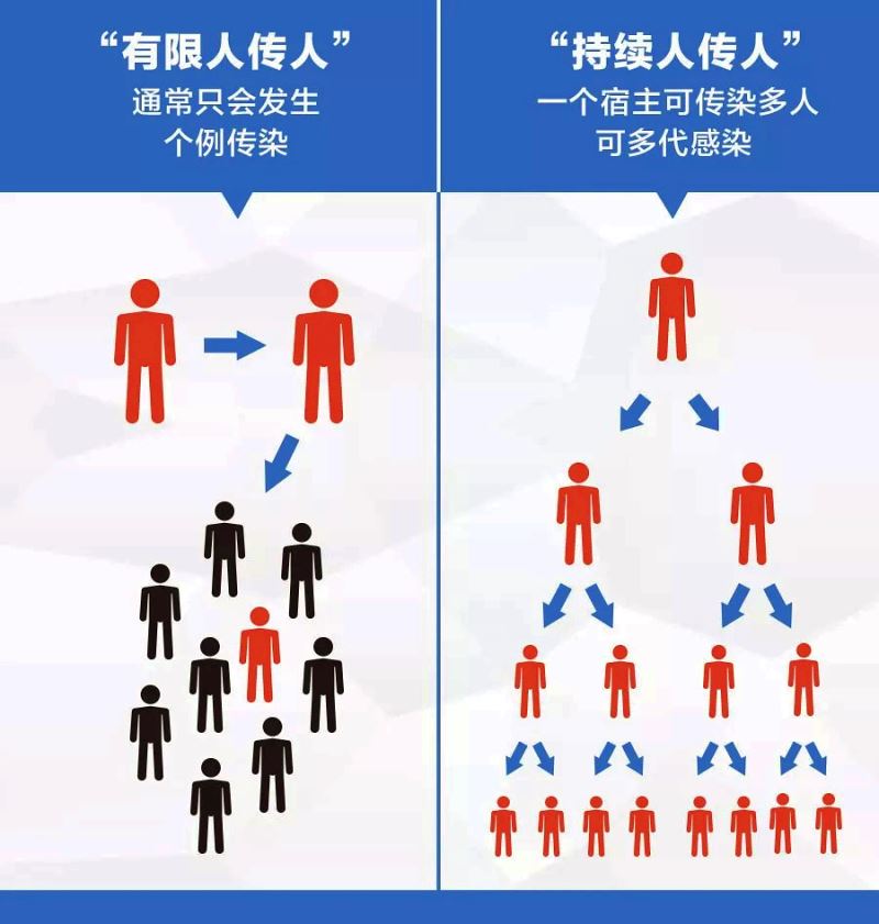 更危险的情况则是“持续人传人”。一个宿主可传染多人,可多代传染。