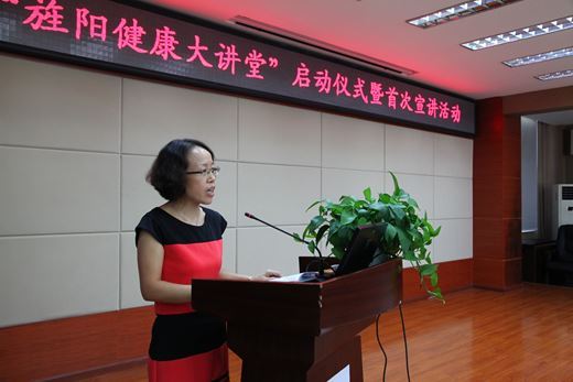 启动仪式后“旌阳健康大讲堂”首次宣讲活动也拉开了帷幕。邀请了区中医院院长杨代喜和区妇幼保健院院长唐岩分别以饮食与健康、骨质疏松的预防与治疗为主题,利用多媒体系统,围绕健康基本知识与理念、健康行为方式与生活、基本技能三个方面展开了精彩讲解,赢得了阵阵掌声。