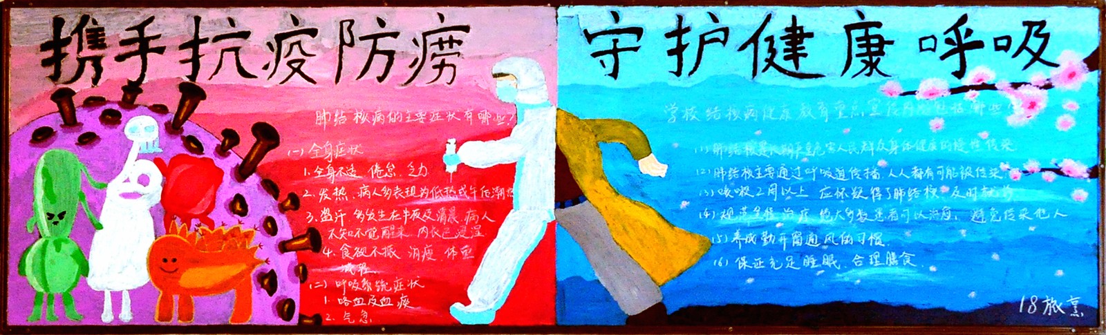 10月10日-10月20日,旌阳区疾控中心联合黄许职中,开展主题为“携手抗疫防痨 守护健康呼吸”的黑板报评比活动。全校共50个班级参加活动,最终评选出一等奖3个,二等奖5个,三等奖8个,让我们一起来看看吧~