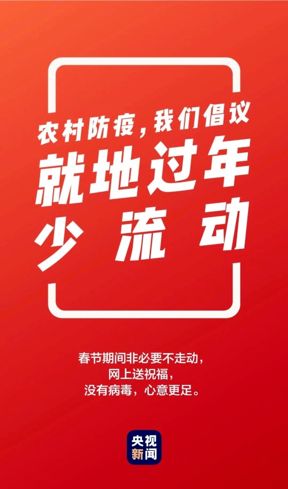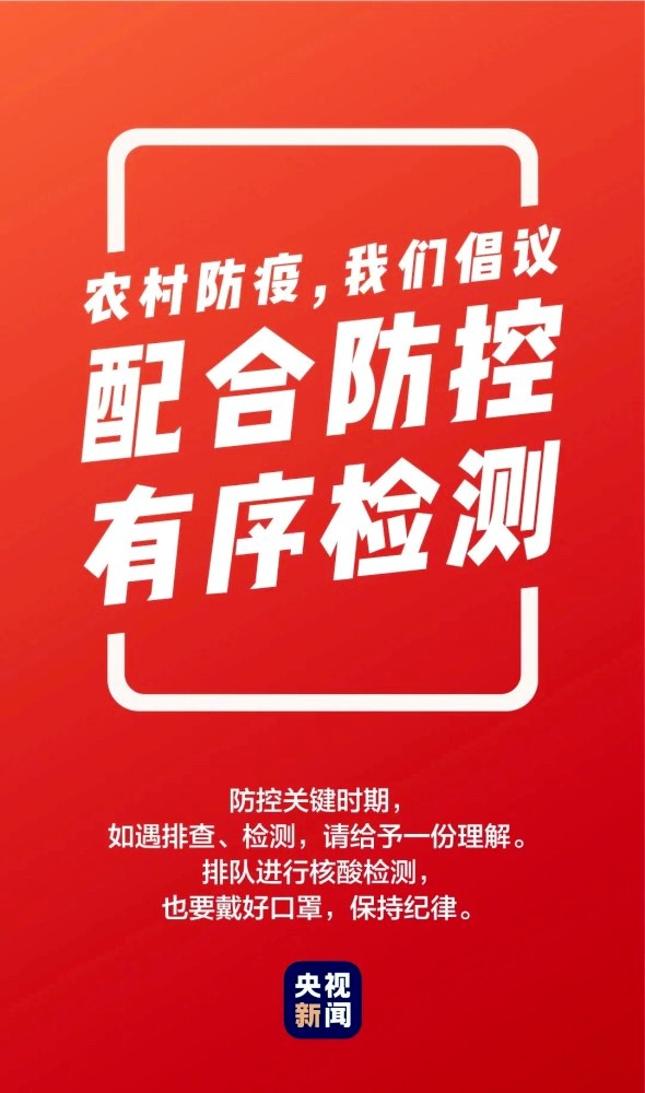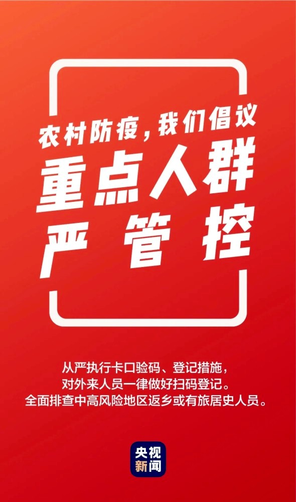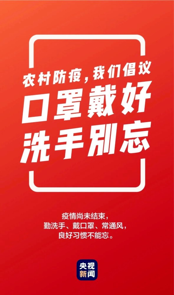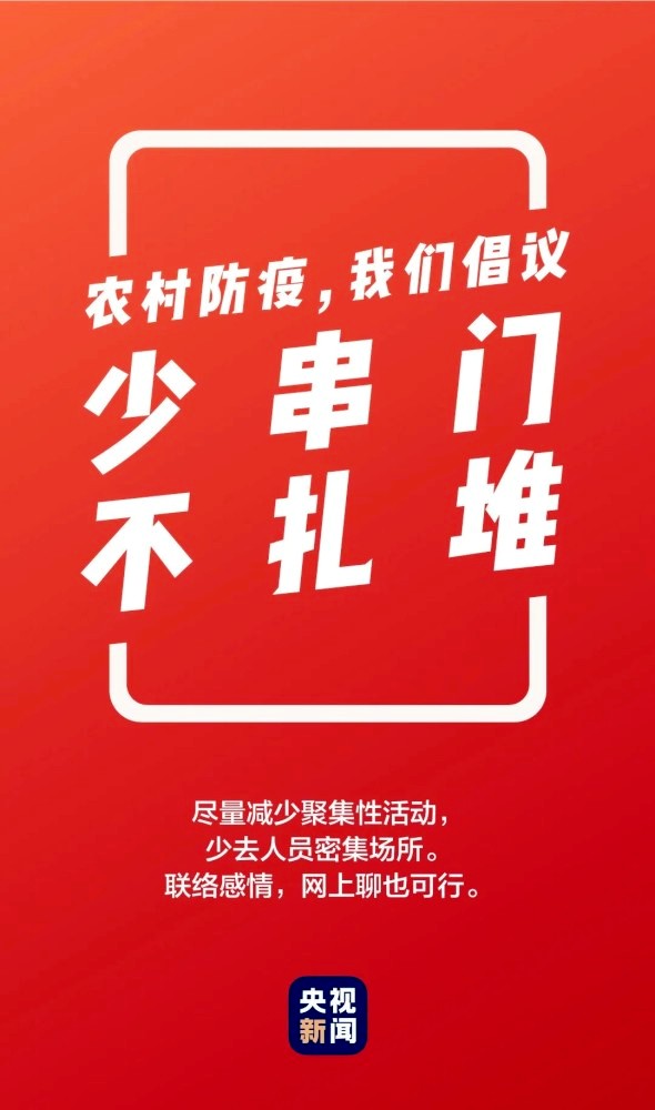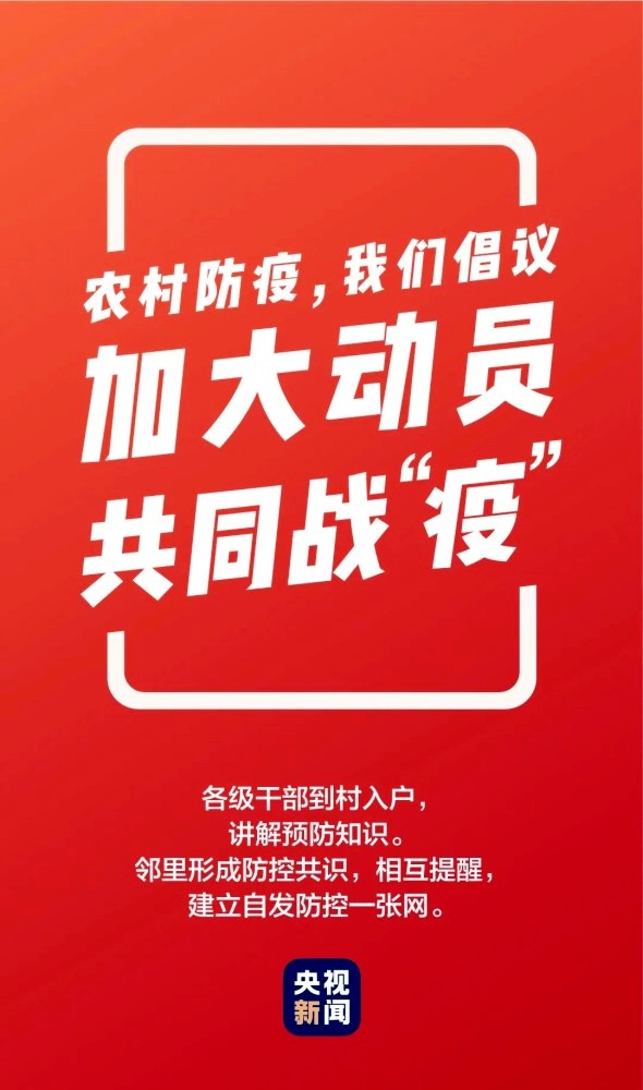 农村地区是当前疫情防控中的薄弱环节。疫情防控态势紧张,个人防护绝不能大意。在此,我们倡议